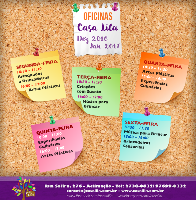 Oficinas na Casa Lila – Dez 2016 e Jan 2017